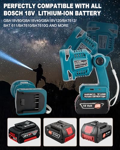Compatibility: This spotlight is designed to work seamlessly with Bosch 18V batteries, including models like GBA18V80, GBA18V40, BAT612, and others, making it an excellent addition to the toolkit of any Bosch user.
