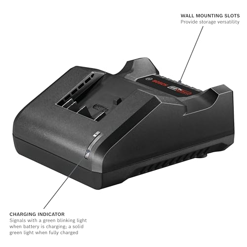 The provided charger is designed to be efficient, offering compatibility with Bosch’s 18V Li-ion batteries, although it doesn’t cater to the more demanding PROFACTOR high-power tools. The included charging indicator is a useful addition, showing a blinking green light during charging and a solid green light when the battery is fully charged.