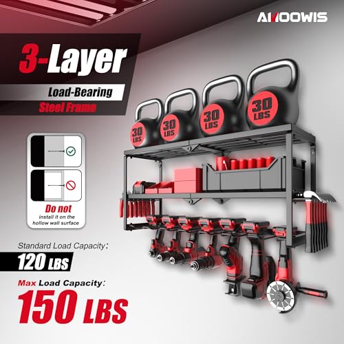 The Amoowis Power Tool Organizer is crafted from heavy-duty metal, ensuring durability and longevity. The fully welded construction adds an extra layer of robustness, making it capable of holding substantial weight without any risk of bending or breaking. The metallic surface is coated to resist rust and corrosion, which is particularly beneficial for garages that are exposed to varying temperatures and humidity levels.