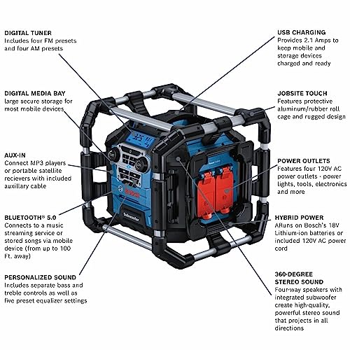 The BOSCH GPB18V-5CN is not just an ordinary jobsite radio. It combines durable construction, advanced sound technology, and versatile power options into one powerful unit. This radio suits not only construction sites but also tailgate parties or outdoor gatherings, making it a versatile accessory for any occasion.