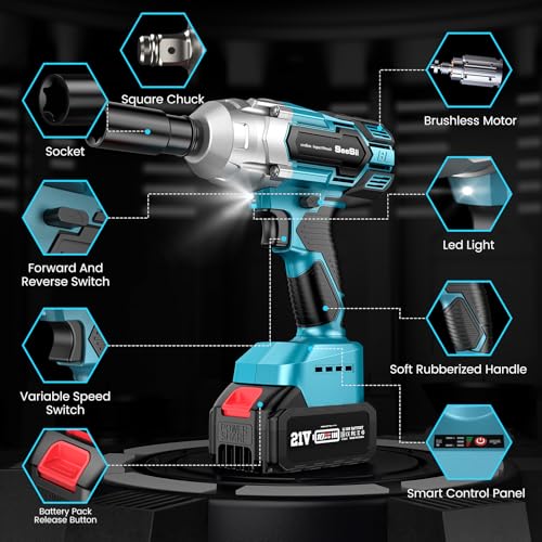 The Seesii Cordless Impact Wrench is designed to combine power and efficiency in a compact form. With a robust brushless motor, it’s an essential tool for both DIY enthusiasts and professionals. This impact wrench is equipped with features such as two-speed modes, high torque levels, and a versatile design, making it suitable for a variety of tasks, from automotive repairs to construction projects.